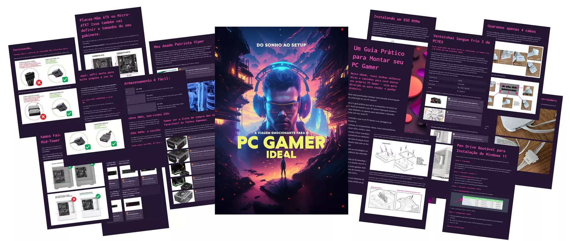 Descubra o universo da montagem de PCs com mais de 200 páginas repletas de insights valiosos, dicas práticas e guias detalhados que transformarão sua experiência de construção e otimização de PCs Gamer.